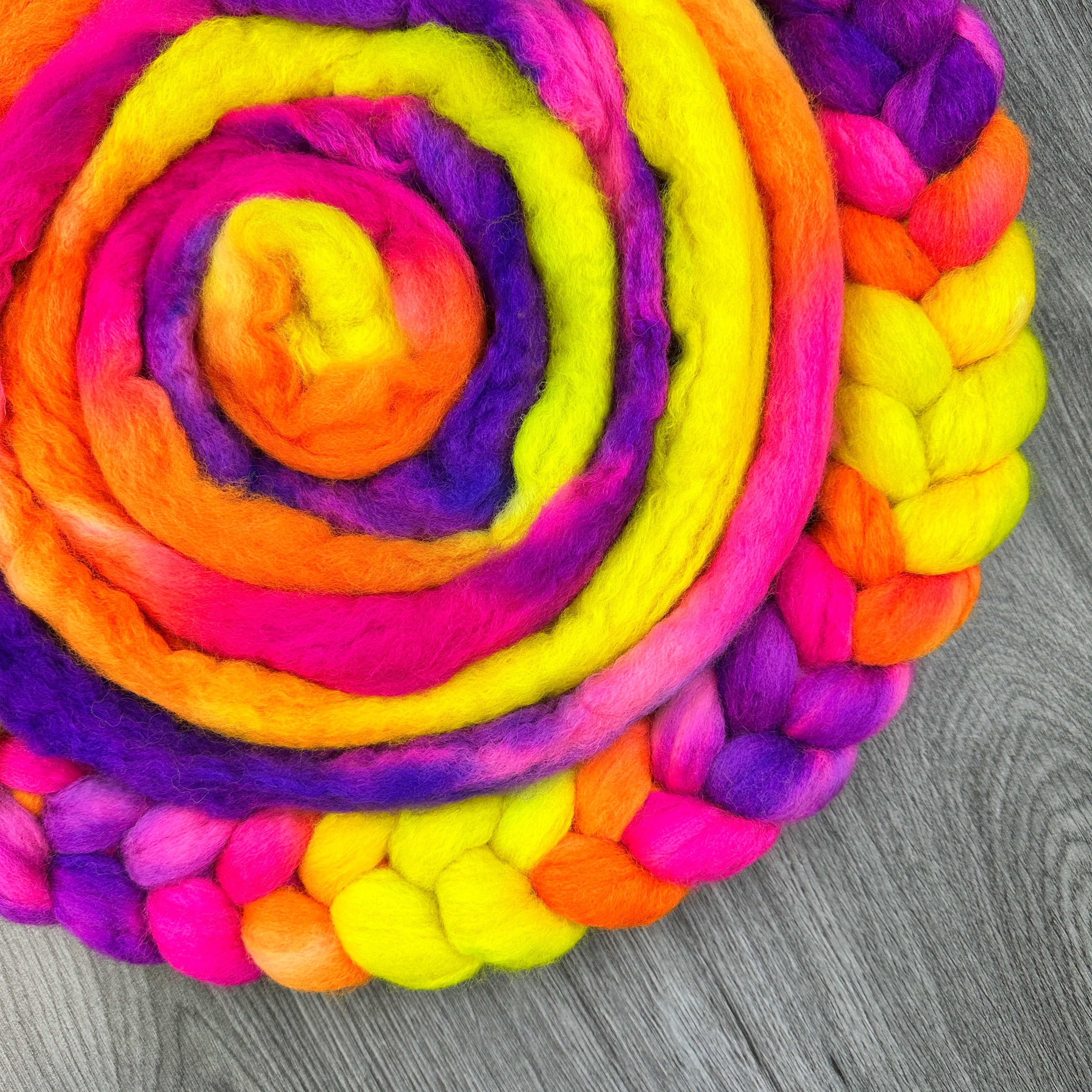 Hand dyed wool top for spinning or felting.